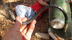 We installed the oil by pumping 6 to 8 ounces into the boot before securing the outboard clamp. (That is a liquid hand soap pump bottle which worked very well). Then move the rack slowly while squeezing the boot to push the oil into the main housing of the rack. The boot was stretching quite a lot like a soft balloon. Once the oil was in the rack, and mostly air in the boot, then it would gurgle properly when moving lock to lock. But the material is soft enough to cause significant deformation of the boot near end of travel in both directions. It works for now, but will have to keep an eye on this one to see how well it holds up in service.