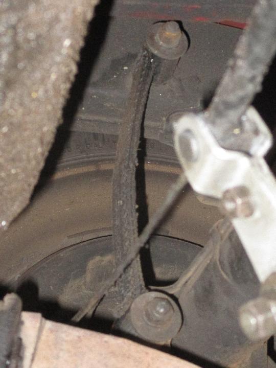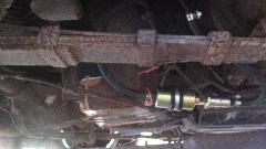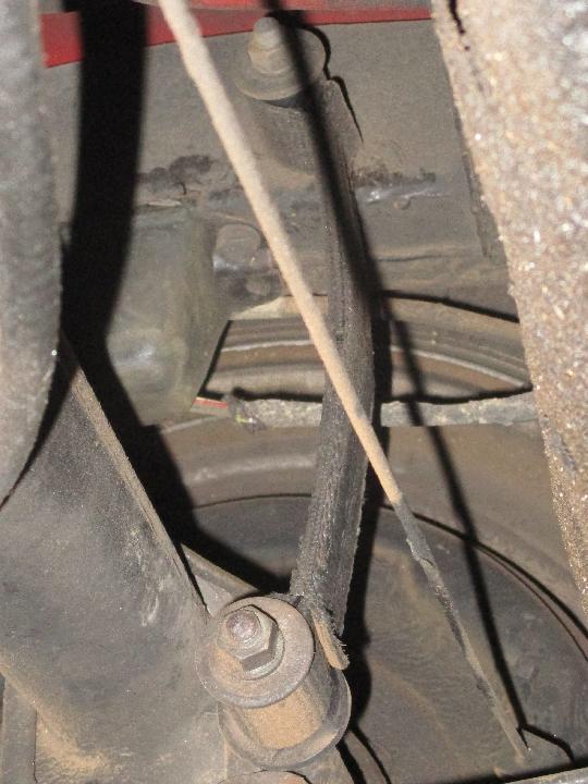 Then a few minutes to take pictures of the rebound straps that were installed after replacing rear springs. Here the floor jack is supporting the rear axle with full weight of the car (and one 240 pound passenger and boot full of luggage).