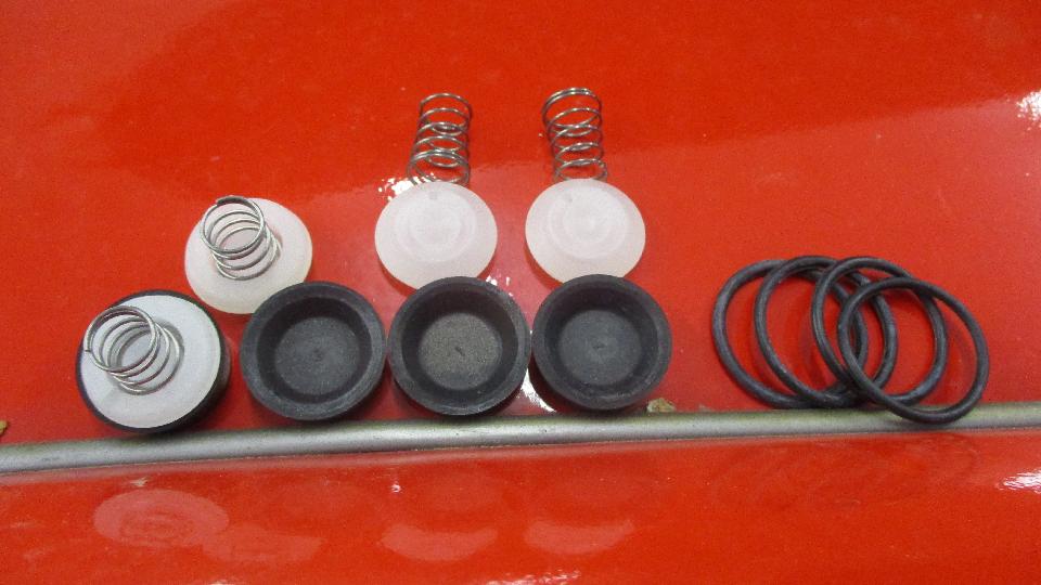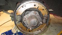 The car got a new master cylinder 18 months earlier, and all was right with the world. But a month ago the car began losing a bit of brake fluid, and a couple weeks ago it began pulling to the left when braking, so it was time to fix it. Sure enough, we found brake fluid in the LF drum and also a little bit in the RF drum. Having 350,000 miles on these slave cylinders (with a couple of interim repacks), I wanted to install four new slave cylinders. However, Moss currently does not supply original type parts, and the replacement slaves they do sell do not have repack kits available, so I opted to install repack kits one more time. The brake shoes had 56,000 miles in 19 months, only half worn but now wet, so they're getting replaced as well. I would normally clean up the wet shoes, but this time I had purchased new ones before I looked (and I don't want to carry a set of brake shoes around in the trailed for another two years).