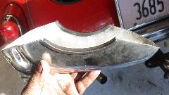 We don't get much more heavily loaded. Notice the rebound straps have are nearly straight, close to end of travel if the axle was to drop lower. These are the good rebound straps (from New Zeland), the ones that do not stretch (as it should be). The problem here is the replacement leaf springs being arched too high, causing the body to ride too high by an inch or so. This causes nasty and possibly dangerous handling characteristics. When body roll occurs during a fast turn (like a freeway exit ramp), one rebound strap can go taught and lift the inside rear tire off the ground. Half the weight of the car on one rear tire causes the overloaded tire to lose grip efficiency, resulting in rear end slide out or oversteer. If you lift off the throttle or apply brakes at that moment the oversteer gets worse and the car can go sideways or spin out. The too-tall springs have been an ongoing issue for at least 20 years.