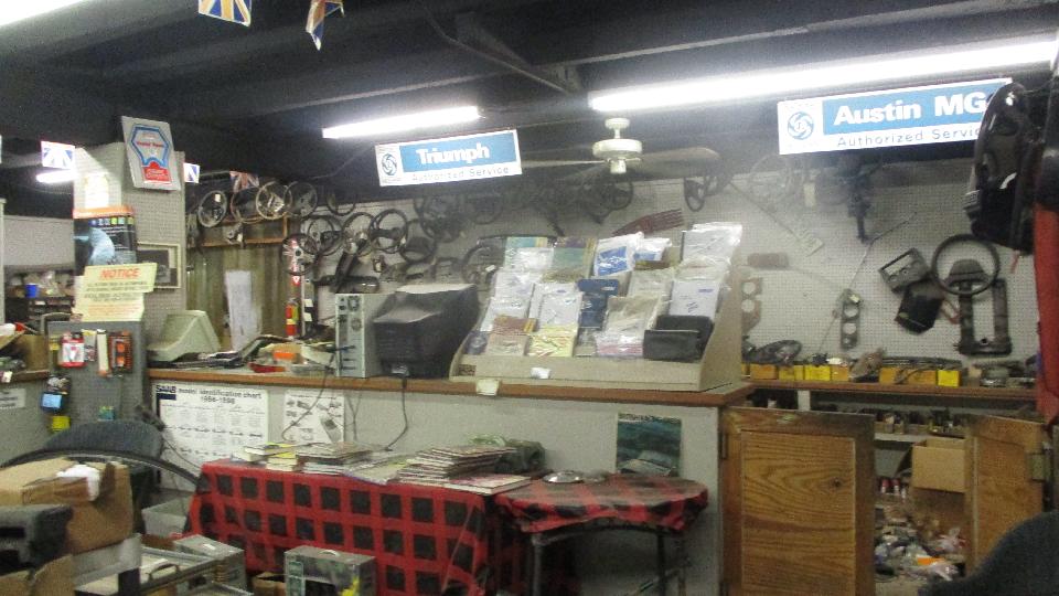 Then we had a hot sprint up the interstate to visit Matthew's Foreign Parts in Birmingham, AL. Used, new, rebuilt, and some New Old Stock stuff. British, Italian, Swedish? Jaguar, Saab, Volvo, MG, Triumph, Fiat, Alfa, so it says on the door. The business card puts MG, Triumph, Jaguar first, with Land Rover tagged on the end. I suspect that may be just about in order of priority.