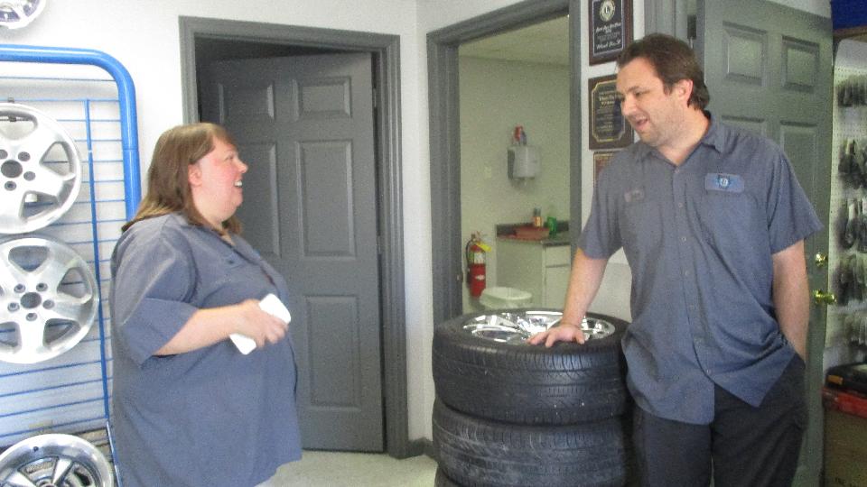 Just around the block in Huntsville was Tom Sharp Tire Service. Meet Jim Sharp, the manager. Nice shop, but they do not have the special outer cone required to fixture wire wheels for spin balancing. Bolt-on wheels and inner tubes okay, but if you want to have wire wheels balanced here bring your own outer cone fixture.