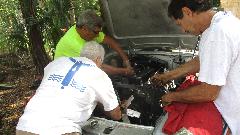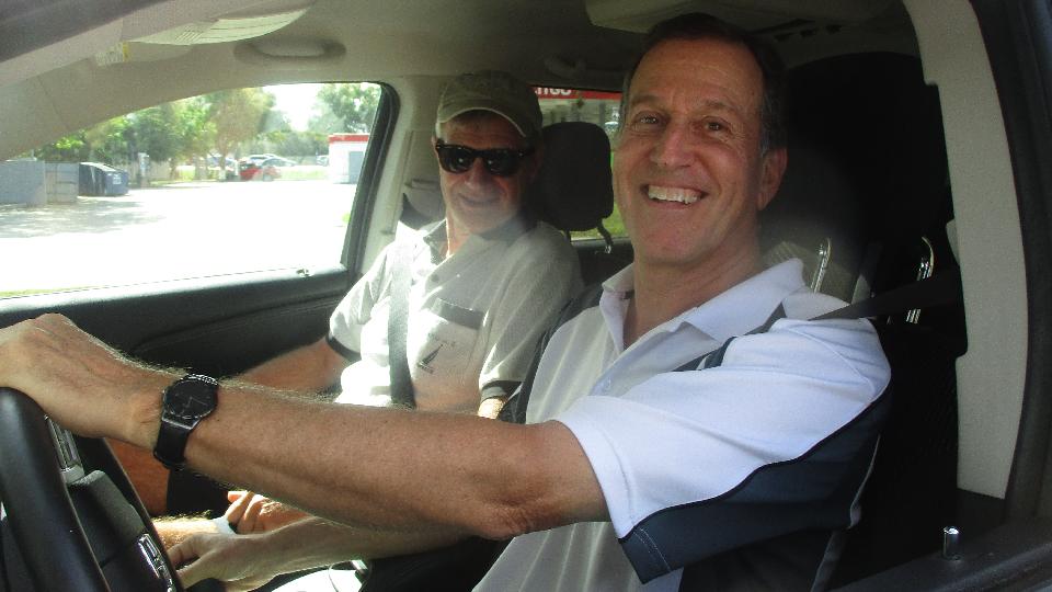 Up early with a phone call as the anticipated appointment is confirmed, and we are extremely close in Brooksville, FL. Meet Jean-Marie and François Gay from Saint-Jean-Sur-Richelieu, Quebec, Canada. This is the second time we have met these "wild and crazy" guys in Florida. Last January's greeting resulted in François donating part of a left front fender that was used for rust repair in my car (last April). François has also finished restoration of his MGA since last visit and is enjoying the drive immensely.