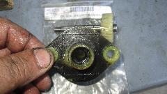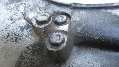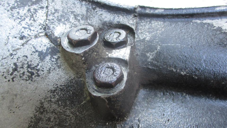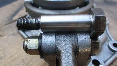 Next issue was a new release arm pivot bolt that was too long on the shoulder length, so when installed it left the bolt loose to rattle around in the carrier. No good to leave it that way as it would eventually wear out the holes in the aluminum front cover. Solution here was to reinstall the original bolt that was correct length (and fortunately in good condition). Pretty sure both the "POWERTUNE" clutch release bearing and the too-long pivot bolt came from Moss Motors. I hope someone will report these faulty replacement parts to the supplier.