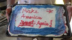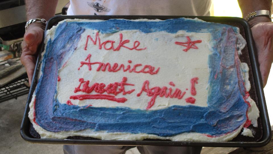 Sneaking up on mid day, we took a short break to watch the inauguration of our new President. Then a barbecue lunch included a novelty cake before we got back to work. Not long to reassemble the gearbox mainshaft with new synchronizer rings. One of the guys announced they had the layshaft back in the box with a thin rod through to hold the thrust washers in place. In short order we had the input shaft and main shaft installed, but then struggling to install the layshaft when it dawned on us that the laygear thrust washers were swapped with the larger one at the small end of the gear, preventing installation of the shaft. Bummer, but once know it was not long to make the swap. But then more troubles.