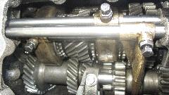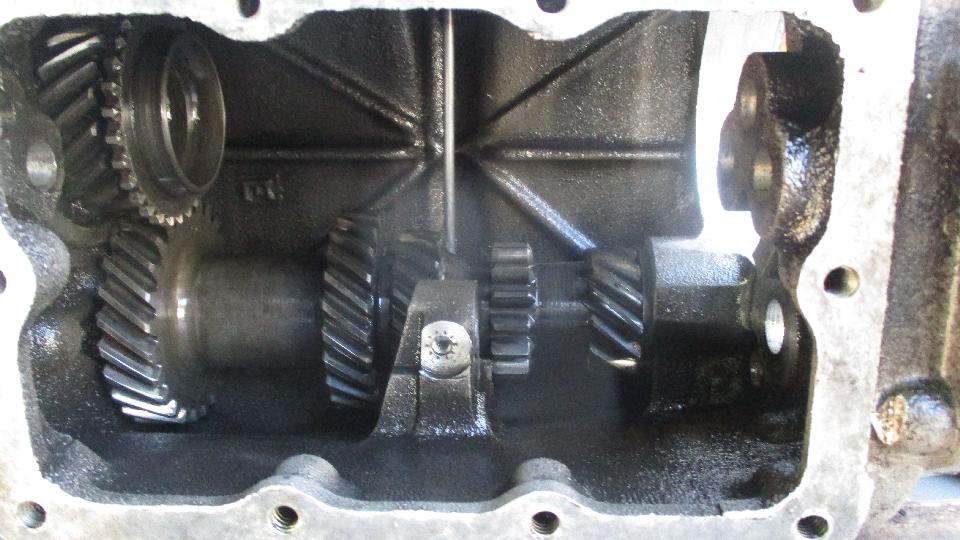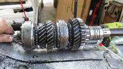 For some unknown reason the laygear could not nestle up close enough to the mainshaft, missing by very little, maybe 0.010-inch or so, but still preventing installation of the layshaft. We took things apart and reassembled a few times in various sequence, but no joy, no go. This makes no sense at all. These are all the same parts that came out, with only two synchro rings having been changed, so no reason why it shouldn't go back together. This killed a few hours with high levels of frustration. Late afternoon a few people had to knock off due to other commitments, so the project came to a halt without resolution. Grrrr. I hate this feeling. Failure is not an option. I think we will sleep on it, and return tomorrow for another shot at the bewitched beast.