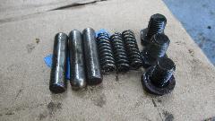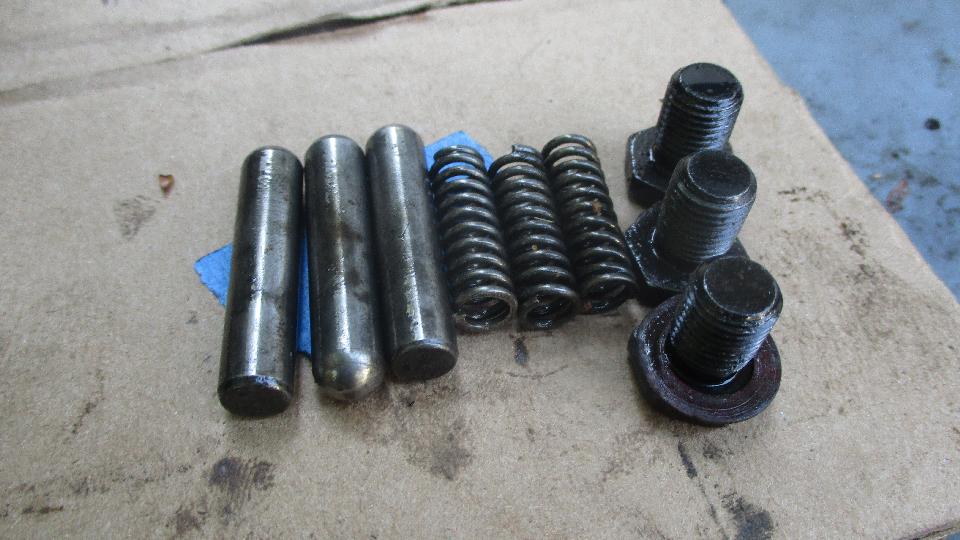 I installed the front cover temporarily with two nuts to retain the input shaft before pushing the rear housing into place. Then the shift rod indexing detent plungers, springs and plug bolts.