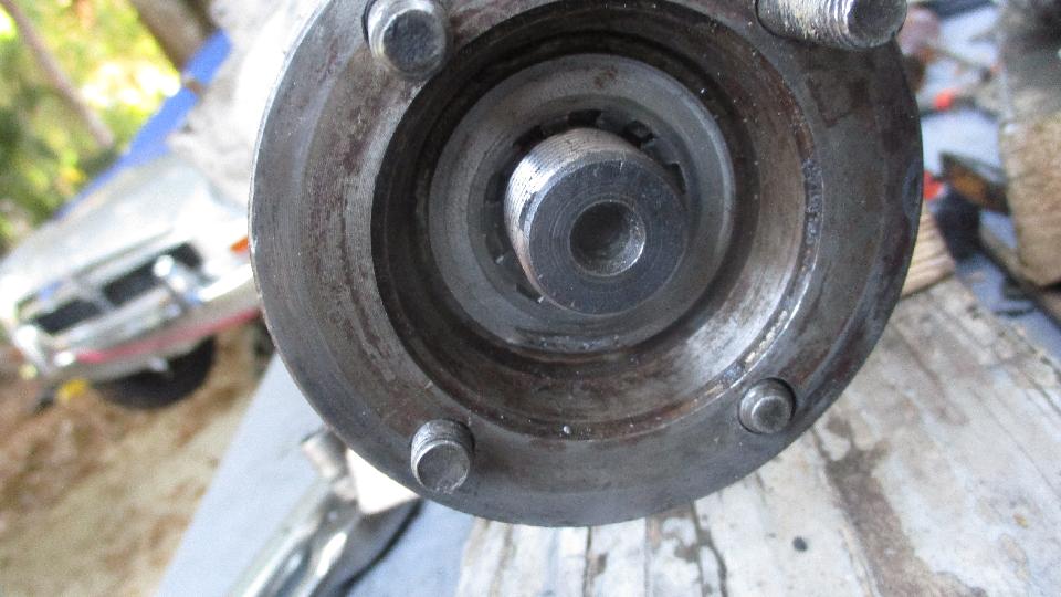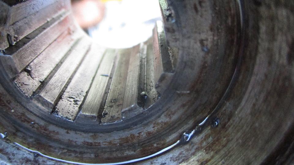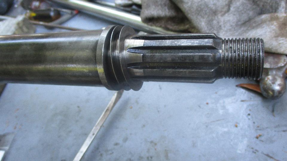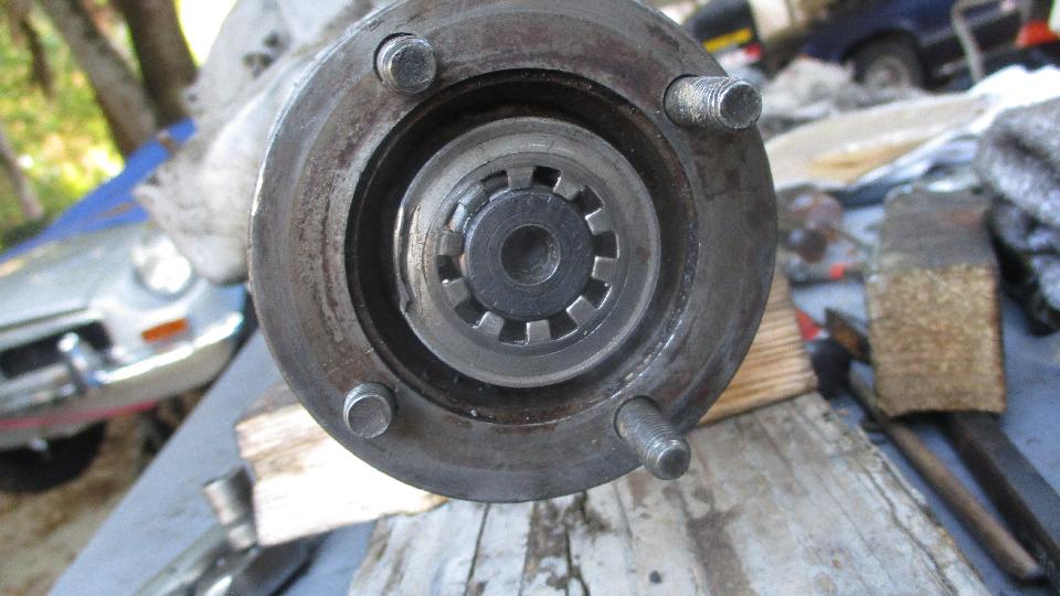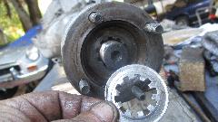 and then another odd problem when the output yoke would only go half way in (even with a hammer). Huh? This turned out to be caused by a sharp burr half way along the crest of a spline inside the rear flange splines. Grrrr. That may be the reason it was so hard to disassemble the week before. A few minutes with a small file took care of that problem, and the rear flange was soon tapped into place. And then the next issue (always another problem looming).