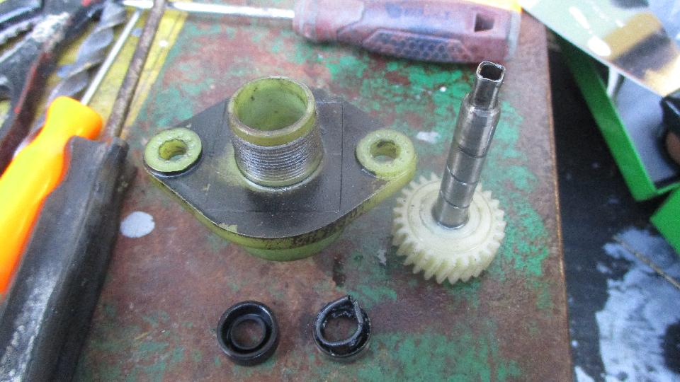 Next up, the speedometer driven gear spindle seal, which is very important because it resides below oil lever in the gearbox. Fun getting the old one out with a bent screwdriver, easy pushing the new one in, and a few minutes later the speedo drive was installed.