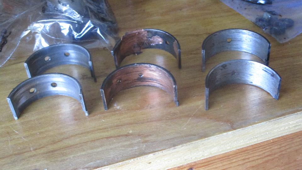We had a short interruption of WiFi work today for a "local" visit. Say hello to Dr. Robert C. Pelot (not M.D.) in Ellenton, FL. He has an MGB with a "slight" problem, like it had a serious rod knock. Photo of the rod bearings shows #1 not bad, #2 with all white metal and half the copper gone, and #3 worn completely through to the steel backing (oops). Without even looking at the crankshaft, I had to tell him the engine has to come out to remove the crankshaft. It was previously ground -0.030, so he may need a new one. The good news is, he was given a spare engine, so maybe this won't be too expensive.