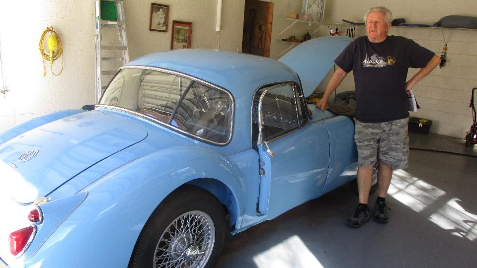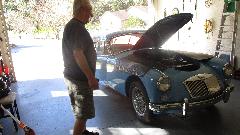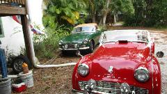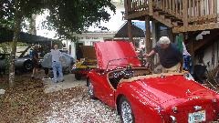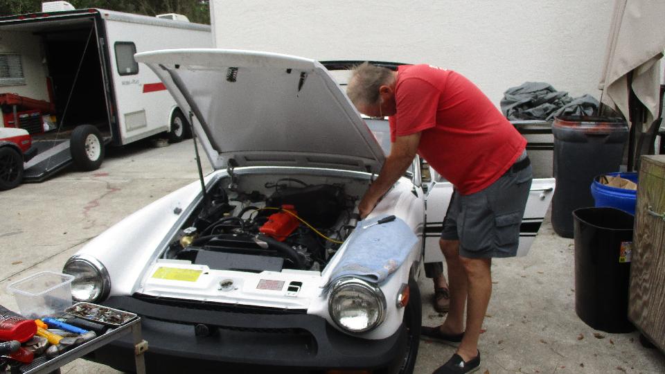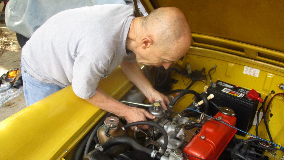 The white Midget was getting final touches to put it back on the road (after 30 years in hibernation and some restoration work). Seems like the Z-S carbs on the Spitfire 1500 engines are a constant problem.
