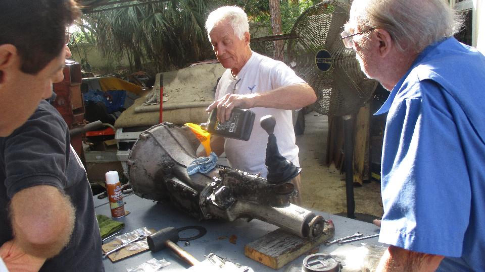 Back at Tech Central today. There were supposed to be some folks from the local sports car club, younger racer types, but they didn't show. One MGB had an alternator failure, another car had an accident, so all in all they decided to reschedule tech day for a week later. That left plenty of work space and very little distraction. Jerry and a couple of friends were busy trying to fire up an RX7 race car, while the gearbox owner and I took another look at the bewitched MGB gearbox.