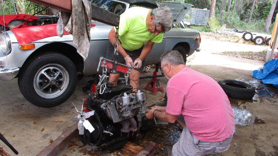 Then we got a message from Dr. Robert C. Pelot in Ellenton, FL, which by coincidence is just across a bridge to the north. He has an MGB with a rod knock (needing some attention), and a spare MGA engine and gearbox. A phone call finds him busy today, which is just as well when we are short on time. We put him on the planning list for next week.