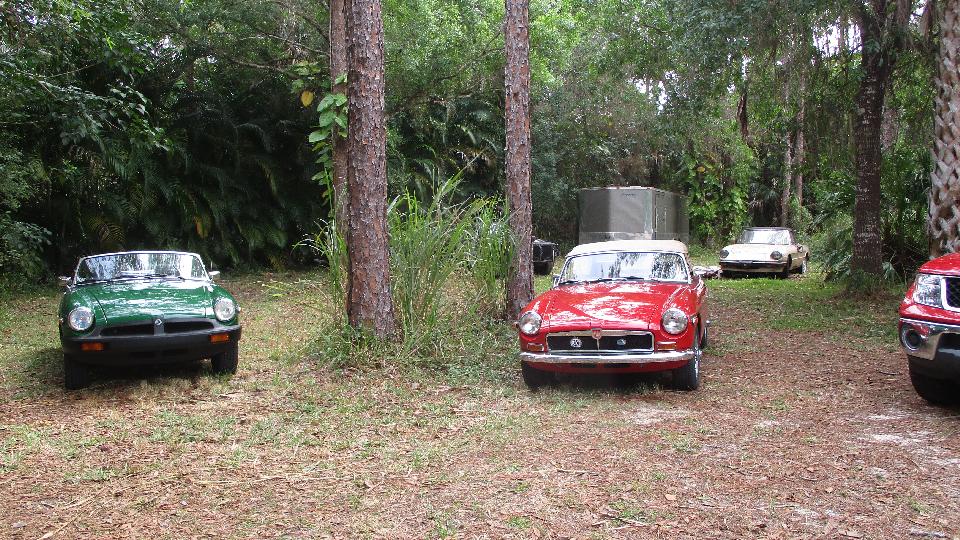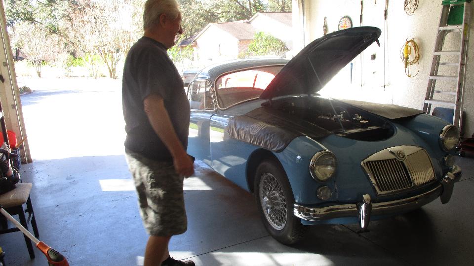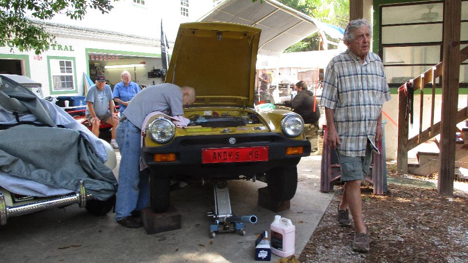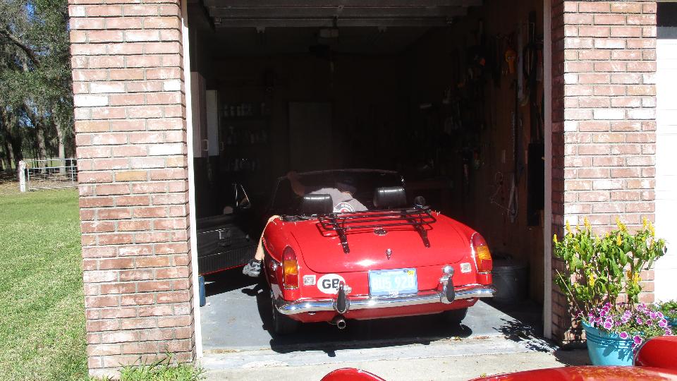We popped up early and put a little husyle on to run for a visit with George Horton in Fruitland Park, FL. He has (hopefully) sold his house and was supposed to be out today. Some small temporary technical hang-up we think, but he has already pretty much vacated the place. The MGB (daily driver car) is to be moved to a friend's place, while the MGA Coupe needs to be trucked north to the new home in Pennsylvania. Problem today is the MGA won't start, and it has to run to be transported.