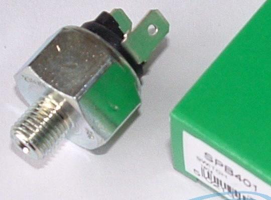 Lucas SPB401 brake light switch, thread 3/8" x 24 UNF, operating pressure 1.36-5.44 bar (20-80 psi), supersedes/replaces Lucas 34446, 34547, 34619, 54033285, 54033360, Intermotor 51610, Aston Martin 048370151, Calorstat by Vernet BS4510, EPS 1.810.099, EPS 1.820.001, Jaguar DAC 3719, Rover 21B 291L. Applications include Aston Martin Sunbeam (all models). Also apparently some Volvo P1800 with power brakes. However, this one does not appear to have the bullet nose so it may require a copper washer for sealing.