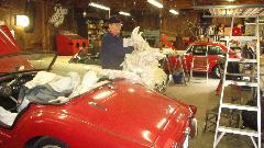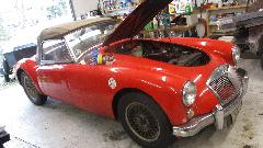 Up the hill in the local workshop we find some customer cars, a TR3, a big Healey, and a MGB-GT. About time to deliver some of these, as space is at a premium with more customers waiting. There is another shop in the neighborhood, new acquisition and bit larger, heading for some expansion of the business.