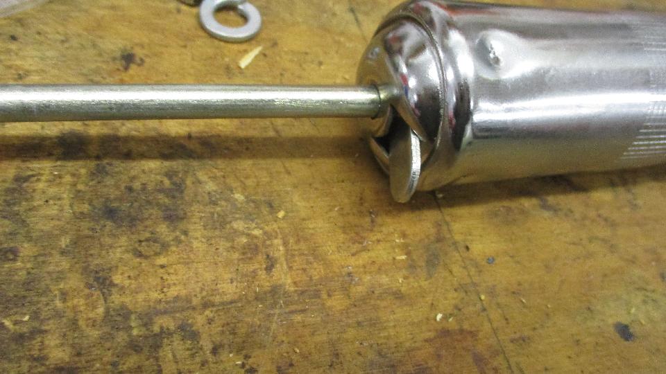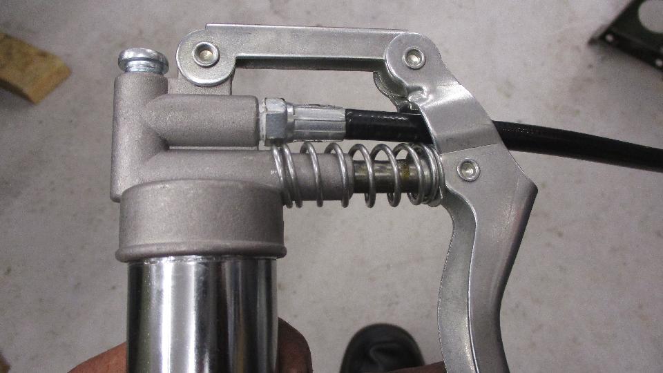 Needing to assemble a flex hose to my new mini grease gun (replacing one I left behind somewhere). Who's idea was it to put the port so close to the spring? Had to compress the spring before the hex on the hose would screw in. Then the "T" handle dropped off before I could unscrew the barrel (put that back on).