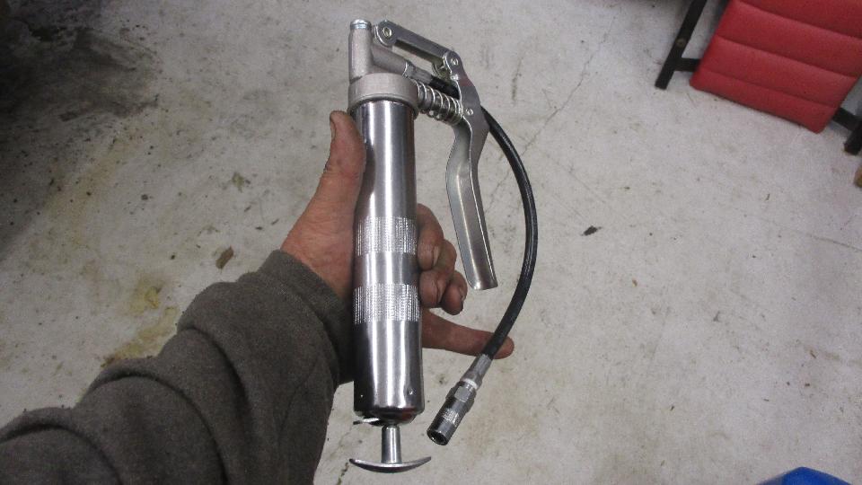 Then had to fight the funny thumb lever latch for five minutes before I could get the plunger withdrawn. And the thick rubber seal ring was badly out of place where I'm sure it wouldn't seal, and had to put that back in place. So had to fix three or four things before I could use the tool, but happy to say it actually works. High pressure with the one-hand pump, but low volume squirt, so needs twice as many pumps as a big grease gun. Great for a small travel tool.
