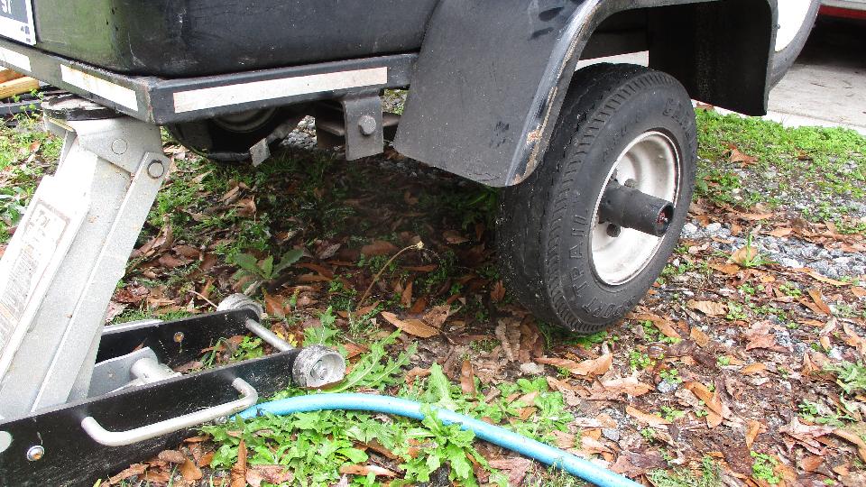 After greasing the car I jacked up and spun the trailer wheels and greased the bearing buddies. This is a bit of a point. In years past I used to have problems with trailer wheel bearings, repacking and changing seals annually, and replacing an inboard bearing about once a year (cheesy seals). In late 1997 I had the hubs machined to accept better seals and installed Bearing Buddies. Just grease the hubs once a year to keep them fully packed with grease, and haven't have any bearing problems in more than 19 years, 143,590 trailer miles on the (now 216,000 miles on the trailer).