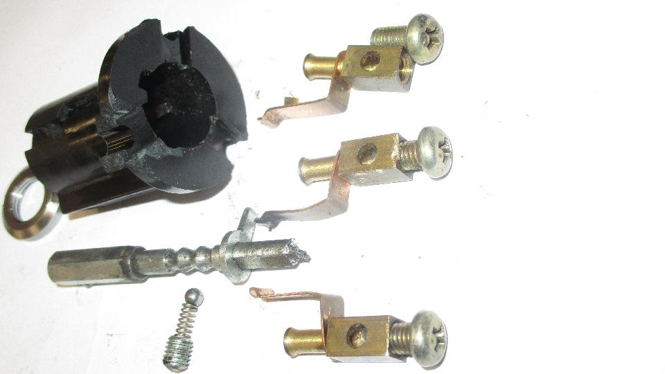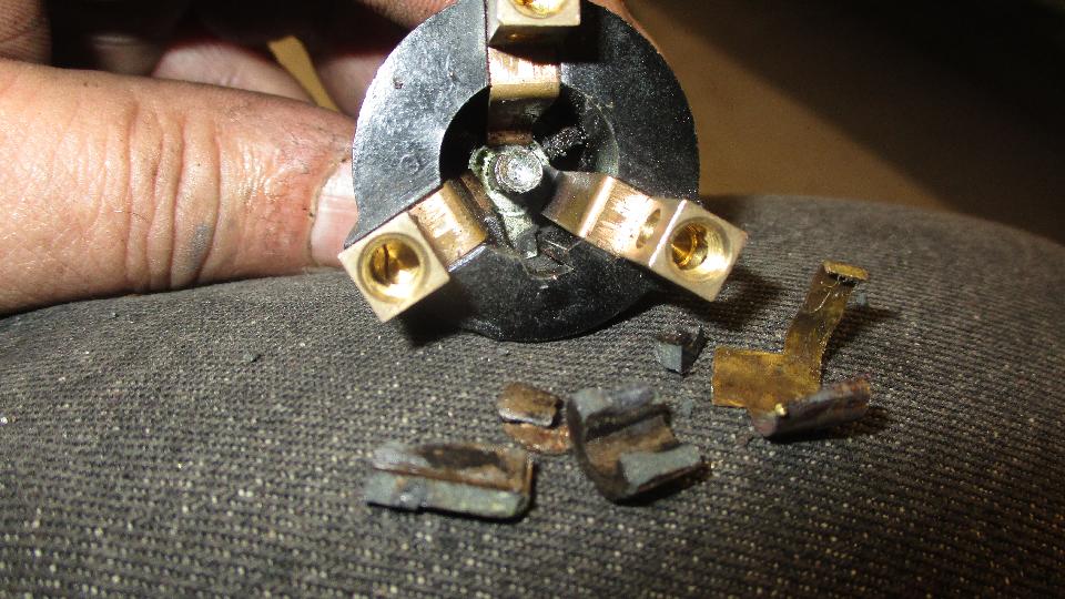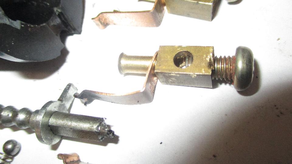 Jim Walton dropped in for a bit while I was doing some grunt work under the dash. Then I got to do the autopsy on the failed switch. It didn't take long to find the culprit. Looks like the power input terminal was touching the steel keying plate when the switch was pushed fully in to the OFF position. Must be the brass contacts are a bit too long. Not the only contact problem with this switch, Since it was new it would occasionally glitch out with a no-power condition. It would also regularly have the headlights on when in the parking light position (just jiggle the knob to change conditions). Also an issue with the screw terminals which are over-drilled so the set screw tip landing on the bottom hole would cut the wire off like a guillotine. The new switch is same model as the old one (!@#$%^&*). First operation has the parking lights either on or off depending on a jiggle of the knob. Going to have to keep an eye on this one for a while.