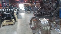 I won't remember everything, but Coket Tire and Wheel is into restoration and rebulding (and new building) of all sorts of wheels for vintage cars (including wood and wire wheels). They are of course famous for remenufacture of vintage style tires (contracted out for molding). Oddly, they also build some special bicycles for sale. For their own museum they are regularly collecting and restoring vintage cars and motorcyscles (and a few aeroplanes), and have a collection of vintage engines. Some years back they bought the rights to operate The Great Race (upon which Coker could no longer compete in that event). They also bought up Honest Charlies Speed Shop (where I used to buy parts back in the 70's), and they continue to operate that business. Early in the tour we got indoctrinated inthe arts of building wood and steel wheels (and wire wheels of course).
