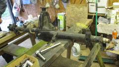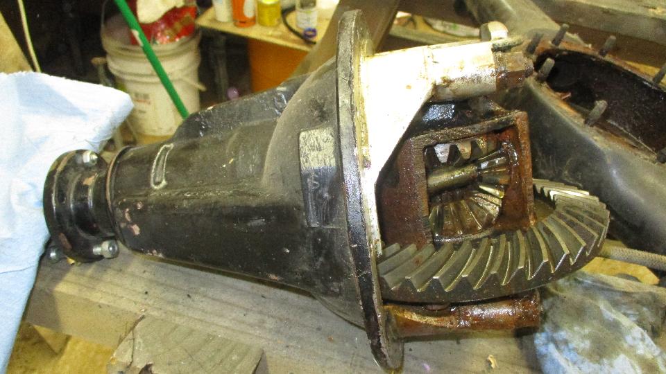 Late start, but got a look at the propshaft on Larry's MGA today. He said there was a "clunk" when backing up, but the splined wheel hubs were good. The differential seemed to be in good condition, snug input shaft and not much backlash. The propshaft rear U-joint had a little bit of play in the spider so it would be a good idea to change that.
