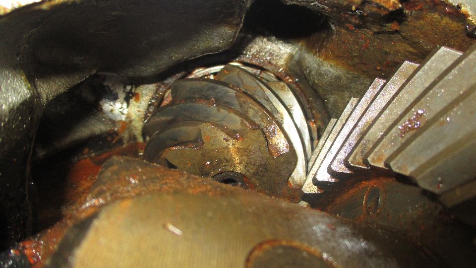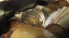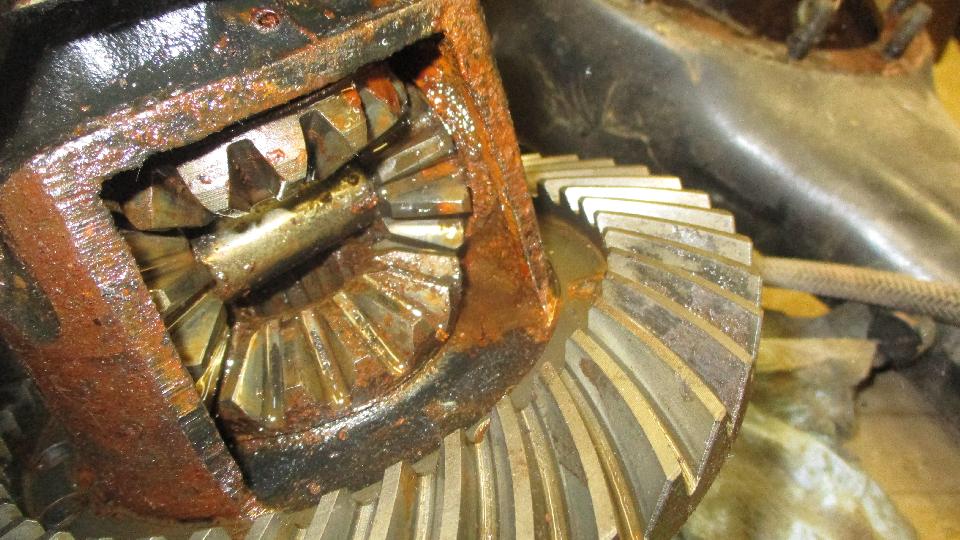 But there were signs of water and rust in here, and closer up there was significant pitting on the ring gear teeth that render it pretty much useless. More pitting on the input pinion gear as well. I think the 10-spline halfshafts look okay, and the mating sun gears are likely useful (since the splines on mine are worn). Looks like I won't be fixing our noisy pumpkin just yet. Now to decide if this differential should be disassembled for the bevel gears, or maybe leave it all together as an emergency service assembly until we get our act together to fix the one in the car.
