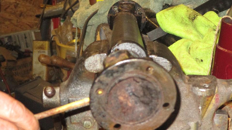 Today we took a shot at removing the last bolt in the starter motor on Larry's Rolls Royce. We failed to find it. The top bolt for the starter motor goes in from the back and threads into the starter motor flange. Pretty high up on the right side, kind of above most of the bellhousing and a bit farther forward. For a big car it sure has some tight spaces and a lot of obstructed visibility. Could have been easier on a hoist, and lying on cold cement in tight quarters didn't help. If we knew exactly where the bolt was we could maybe do it. Friends on the phone were trying to coax us along, but after a few hours of shear frustration, we called it a day. I think we need help from someone who has done it before.