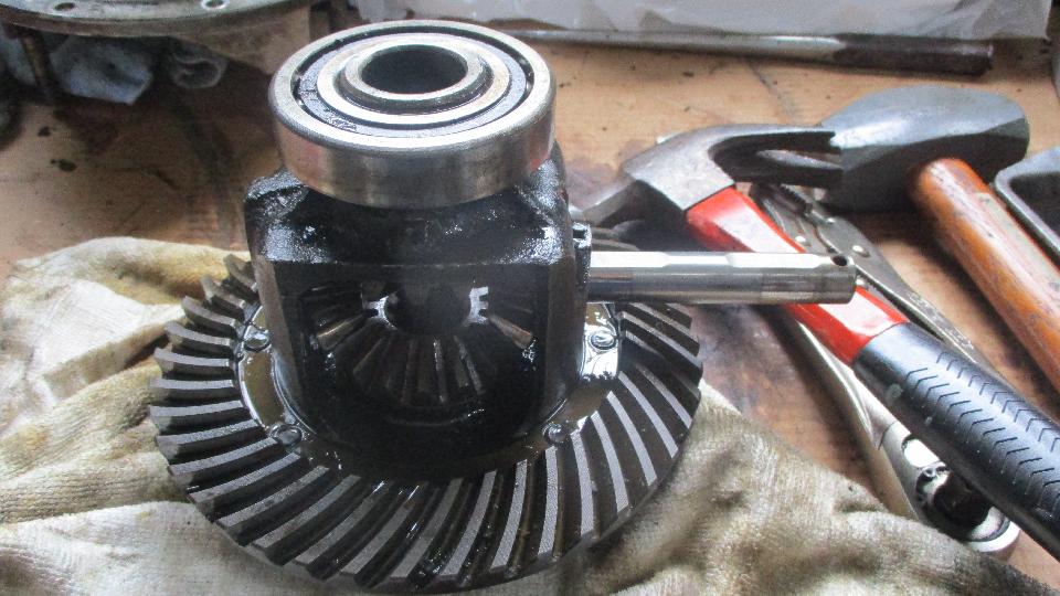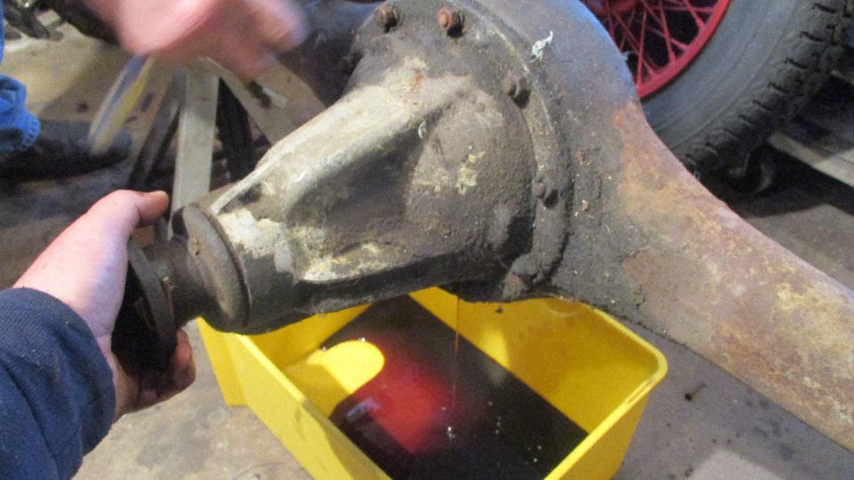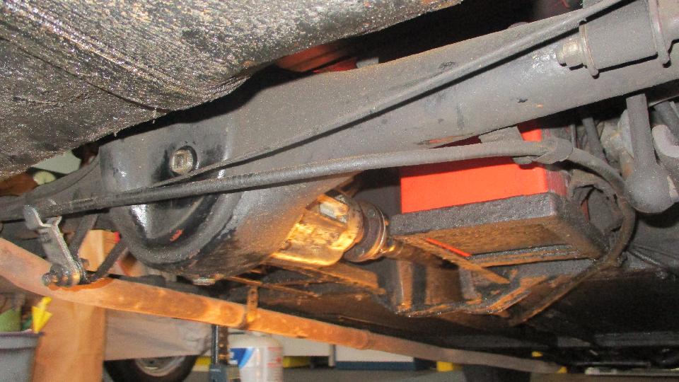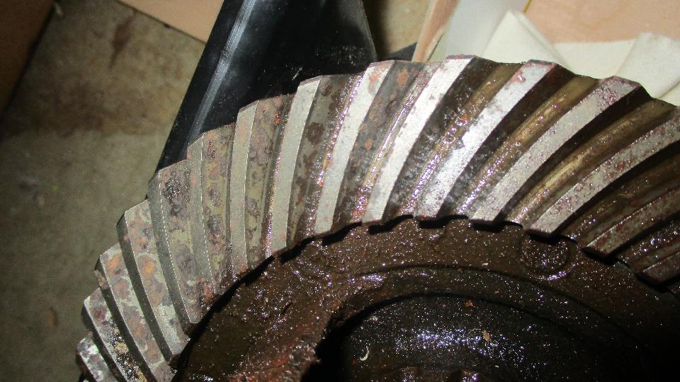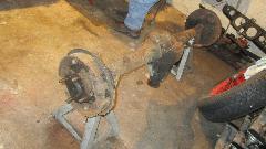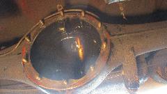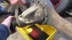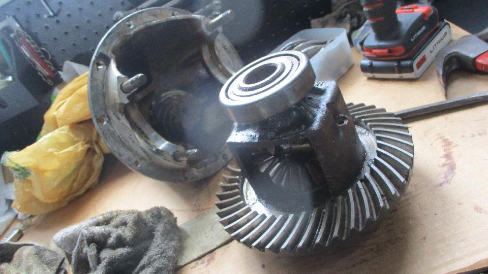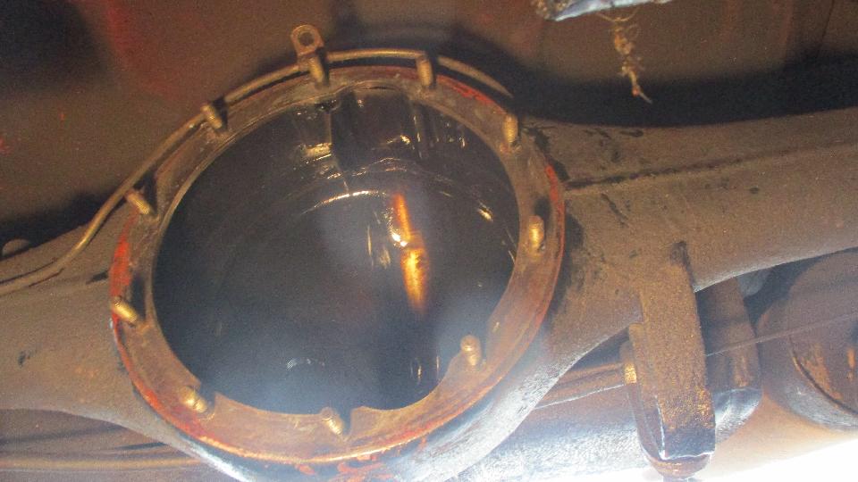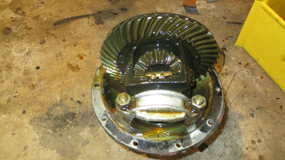 beauty from the offset. Notice dirty and dry, but all buttoned up in a complete rear axle that still had oil in it, nothing exposed to atmosphere. It didn't take too long to kock off the brake drums, pull the halfshafts, drain the oil and extract the pumpkin. And we have a winner, looks like low mileage, minimal wear, all oiled up and no rust. Drain it, rag it, bag it, and toss it in the trailer for future use. Now that I have everything I need to rebuild the rear axle I'm not so much concerned if the existing one might break.