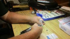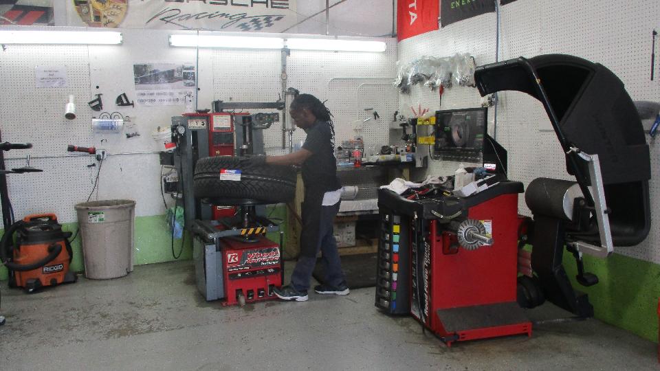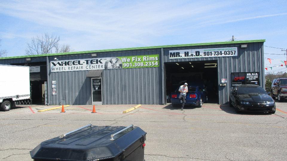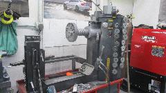 Next we hit Wheel-Tek wheel repair center. Reading banners on the wall was a good start. They deal mostly with large modern alloy wheels, because they have high value and really don't want to be tossed out when damaged. They also deal with steel wheels, mostly rim straightening. They would like to stay arms length away from wire wheels, because labor to repair them is often in excess of the replacement value. But they can mount tires and balance wire wheels, having all the necessary special fixtures to handle the wire wheel hubs.