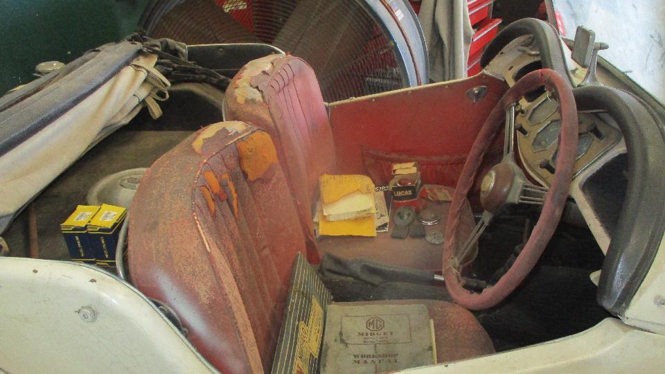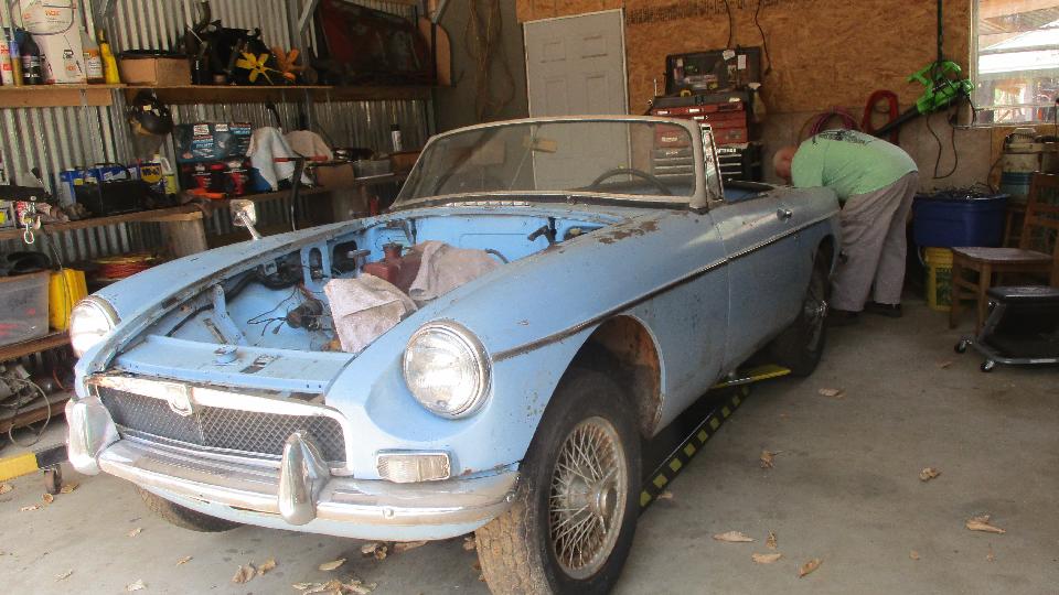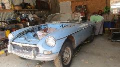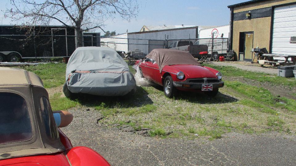 I nearly stumbled over an MGB overdrive gearbox, which I think is waiting for the mating engine before going back into one of the cars in house. These two MGB are the one-owner original type.