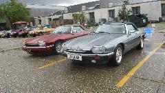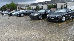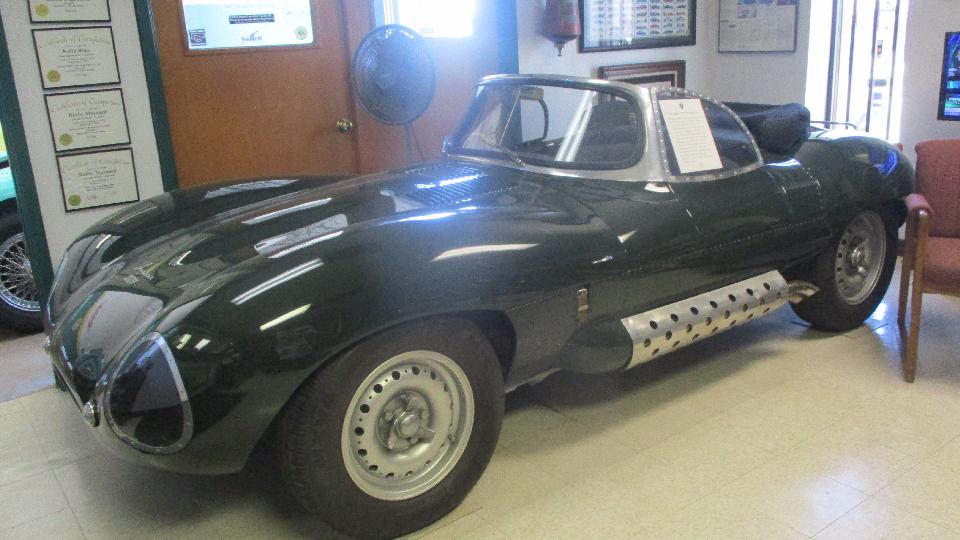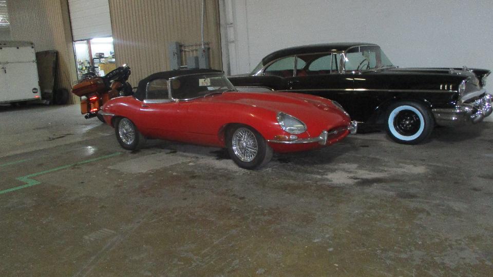 Lots of Jag's here. There was one E-type with no engine bonnet and no doors temporarily hiding under a tarp, but tucked back into its trailer during a break in the storms. Nothing earlier, but plenty of later models, your choice.