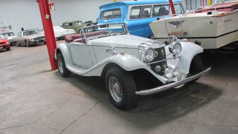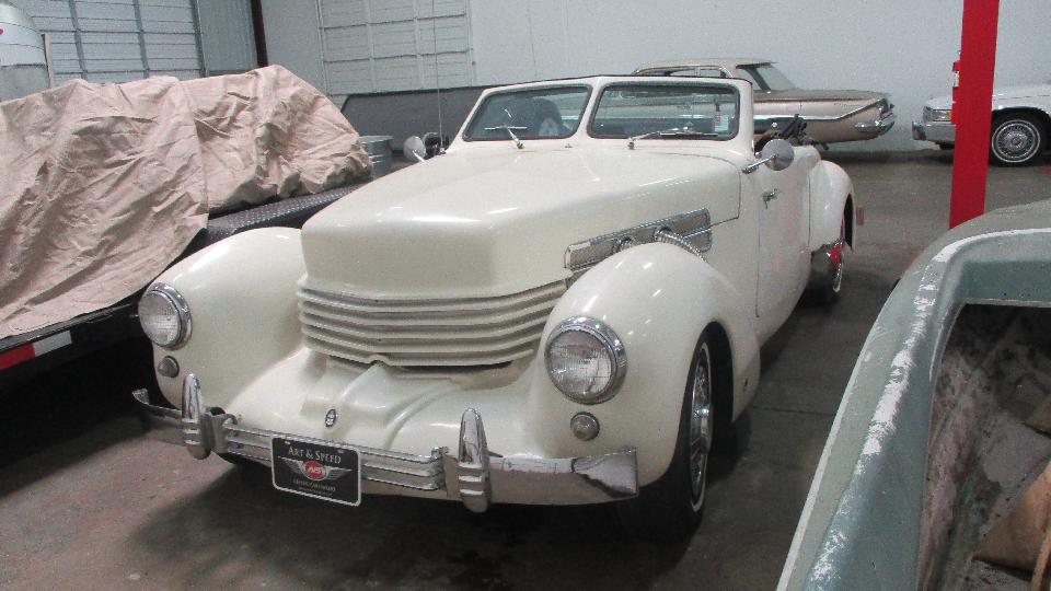 There was a Cord replicar, supposedly a 1969 vintage kit, so by now vintage/antique in its own right (likely not very valuable). Nearby another kit car, didn't recognize the model, something in-line automatic, also likely not very valuable.