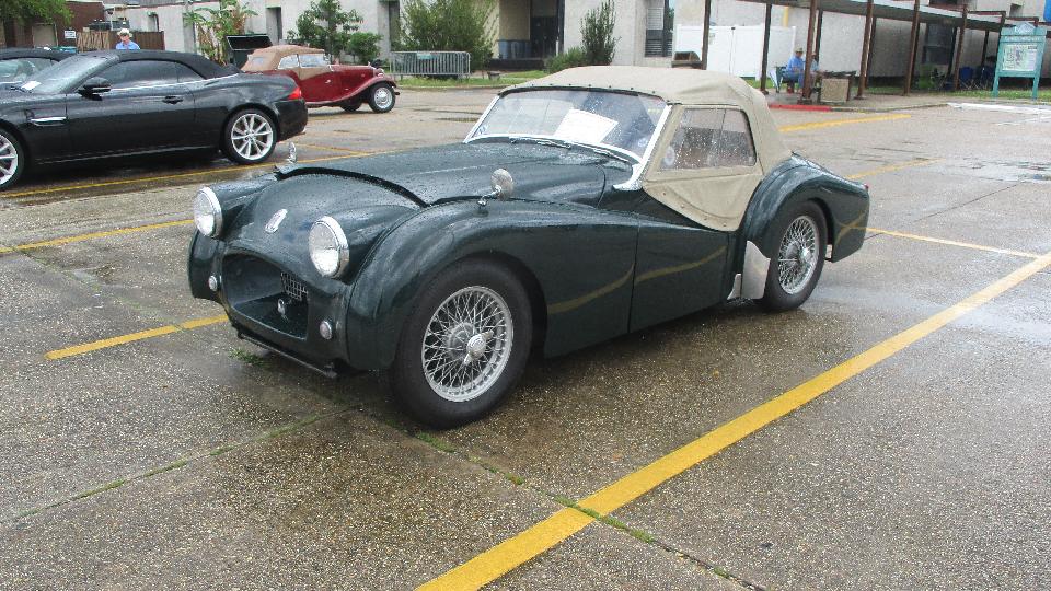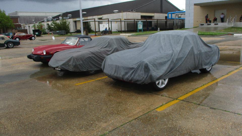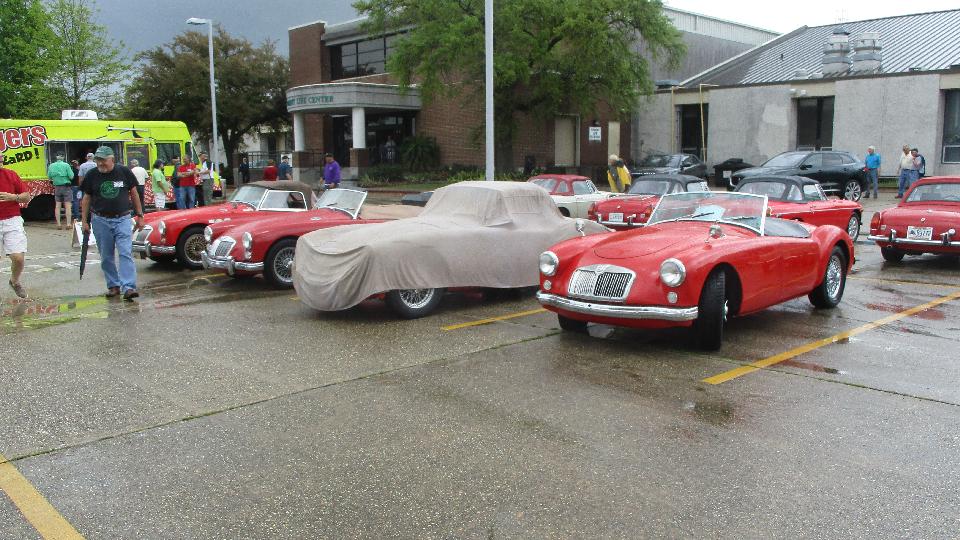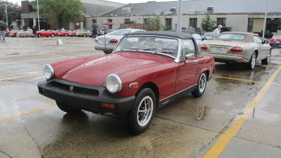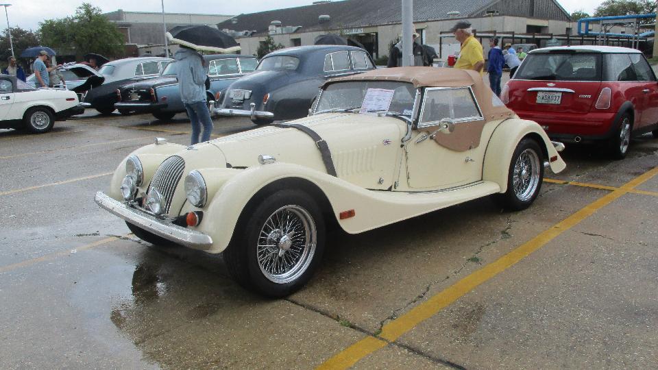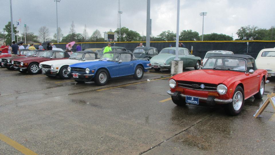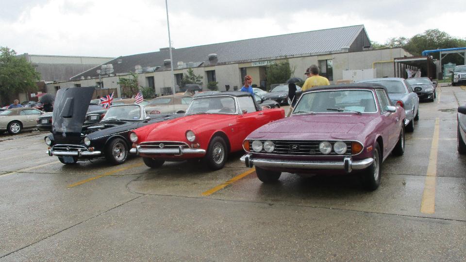 a couple of Foot Longs for breakfast and lunch, then checked into the car show just around the block. This was British Car Day New Orleans, and I suppose they may have some rain more often than not. Pretty nice when we pulled in but raining an hour or so later. I was looking for a short break in the showers to get some pictures. By late morning we had a couple hours of dry and sun for show and tell and judging, before it got wet again.