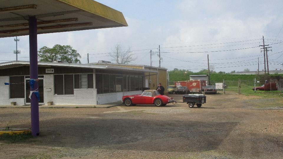 Yes, we made it. First stop today was a visit to H. D. Rogers & Sons in Bossier City, LA. Aside from being locked up, it had the right names on the mailbox, and a bunch of British cars out back. But the phone number we had
