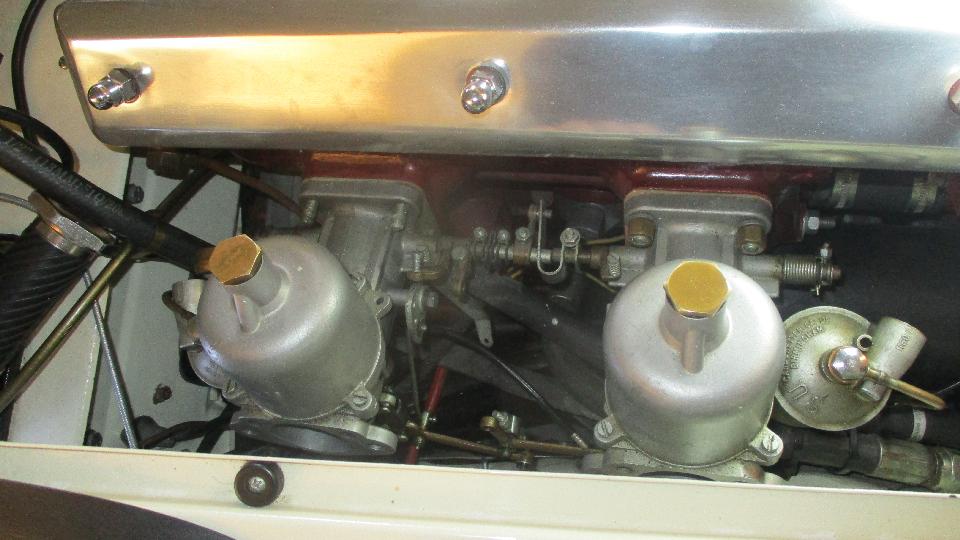Hey, it's a play day, so I get to tinker again. We have an appointment with Phil Marcell in Plano, Texas. Phil has a very nice MGA Twin Cam that had a few carburetor and tune-up problems which he was not prepared to tackle himself (like don't try this at home). First up was the process of soft mounting the dual SU carburetors. With some advance planning most of the required parts were on hand, and Phil had removed the air cleaners, keeping everything else together for inspection and photos before disassembly. But before we got started, we took a few minutes to check out some of his other toys. There was a very original survivor car 1953 Corvette. I have such a soft spot for any survivor car. Next to it was a 1934 MG PA, which Phil had resurrected literally from buckets of parts and piles of rust. And there wa the BMW thing, a Z4 I think, the daily appliance.