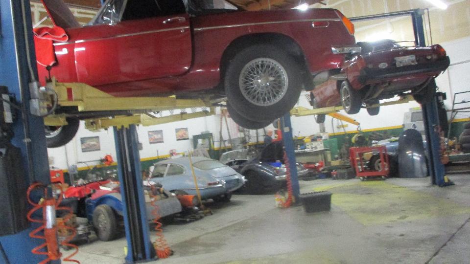 Enough time for shop hopping today, so off to visit half a dozen shops before another club meeting tonight. First up was Sportscars Ltd in Sacramento, CA. Meet Michael Singleton. In the smaller side of the shop we found three MGB, an MGA, a ZB Magnette, and a Lotus getting a chassis rebuild with upgrade of the halfshafts. In the larger side of the shop we found a Morgen Plus 4, three MGB, a TD, two MGA (maybe three) and a Jag E-type. These are all in process (15 cars) getting various sorts of service ranging from brakes to complete restoration.
