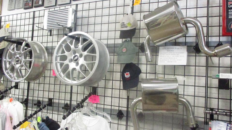 Then we headed farther north for a two-fer to visit Mini Mania (and Spridget Mania) in Nevada City, CA. This business is tucked into a quiet residential neighborhood, so they are not a full service shop (no body and paint or restoration work). They do build engines regularly, mostly to custom specifications, and they have an engine test stand to run in and test the engines before delivery. They also supply the go-fast parts for both classic and modern Mini as well as the Austin Healey Sprite and MG Midget (pre-1975), and yes those big mufflers and wheels will fit on a modern Mini.