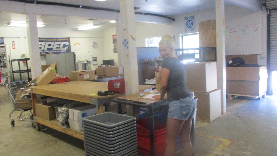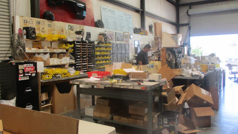 Gearboxes and engines in for rebuild, parts galore, and people to pack and ship your parts orders.