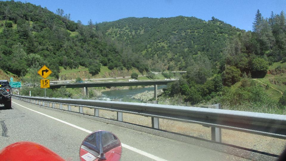 Heading through the mountains back south toward Sacramento, switchbacks at a crawl with lots of traffic. Then the Garmin suggested a shortcut that turned out to be a big improvement. There was almost no traffic but lots of 9% grades and tighter switchbacks, much of it in 2nd gear just because there wasn't enough straight road to go any faster. But it was a delightful drive and indeed saved some time and miles.