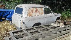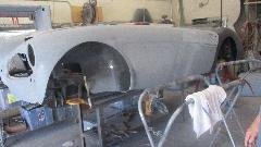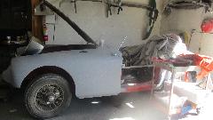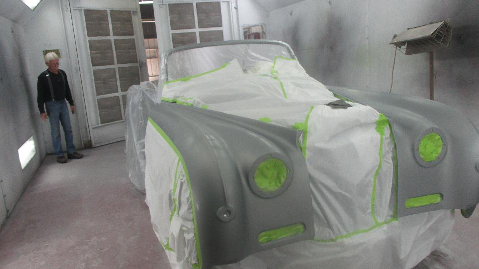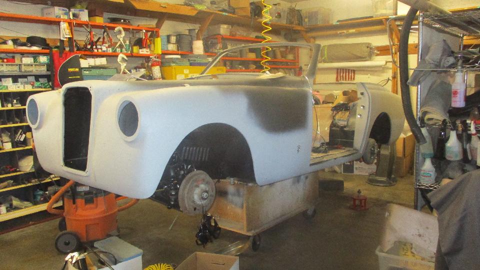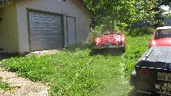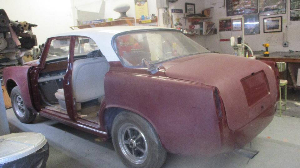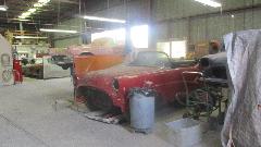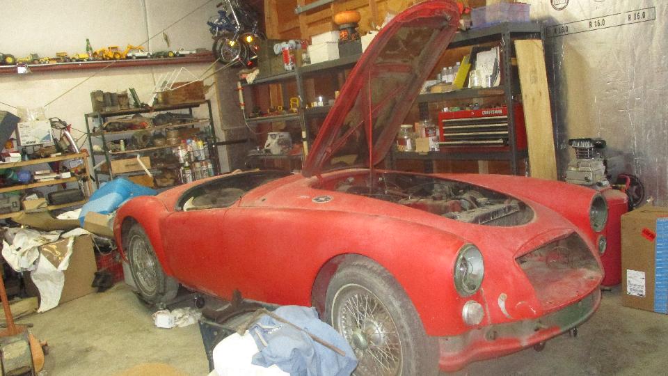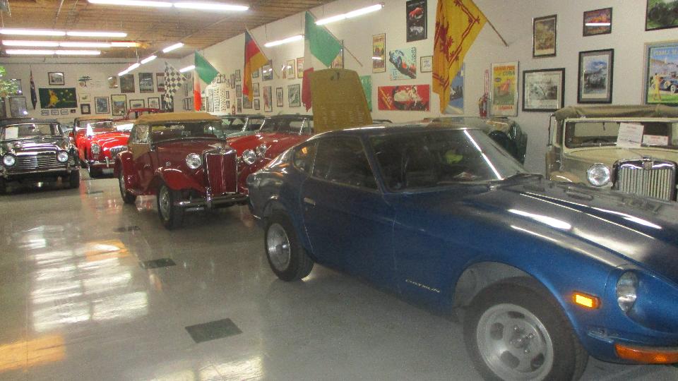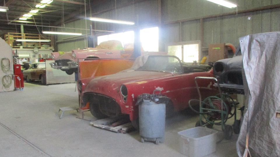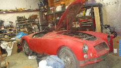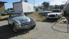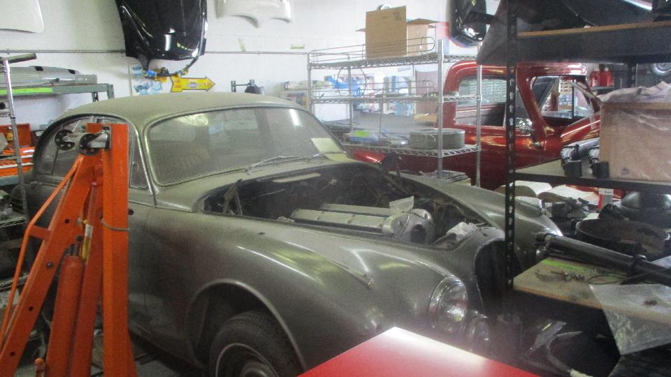 The large sedan escapes me for the moment, although I think it's something fairly rare. The big Healey in primer will eventually look like the one outside. There is also a substantial assortment of pending projects and parts cars.