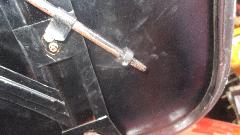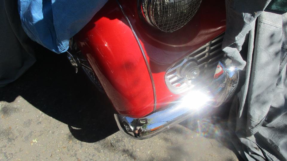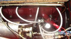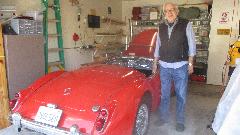 He is also well under way with restoration of another MGA that has been in his possession for many years. And there is a third one under a tarp, maybe should be a parts car, but Stuart has a lot of spare parts lying about, so he intends to put that one back together as well. We took advantage of the shop space to change oil in the gearbox, adjust the front brakes, and fix a wire for the ignition coil and alternator power feed. Also noticed the front license plate bracket had a few too may encounters with parking curbs and was in jeopardy of falling off, so we replaced a couple of bolts and added flat washers to reinforce the holes in the bracket.