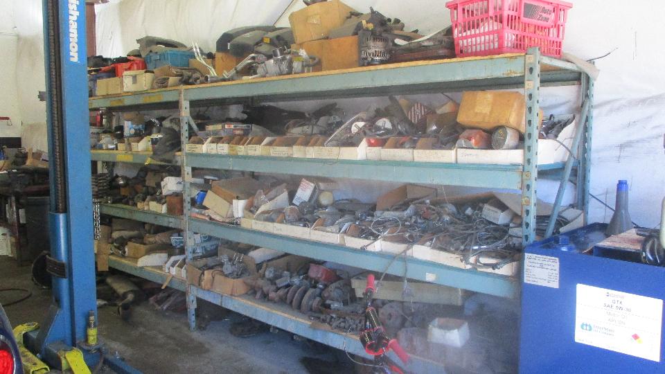 I had to peek under a heavy tarp to disclose the TR4, and then I finally found the Interceptor inside. The vintage British parts also keep accumulating so it looks like this Brit car shop will be around for some time to come.