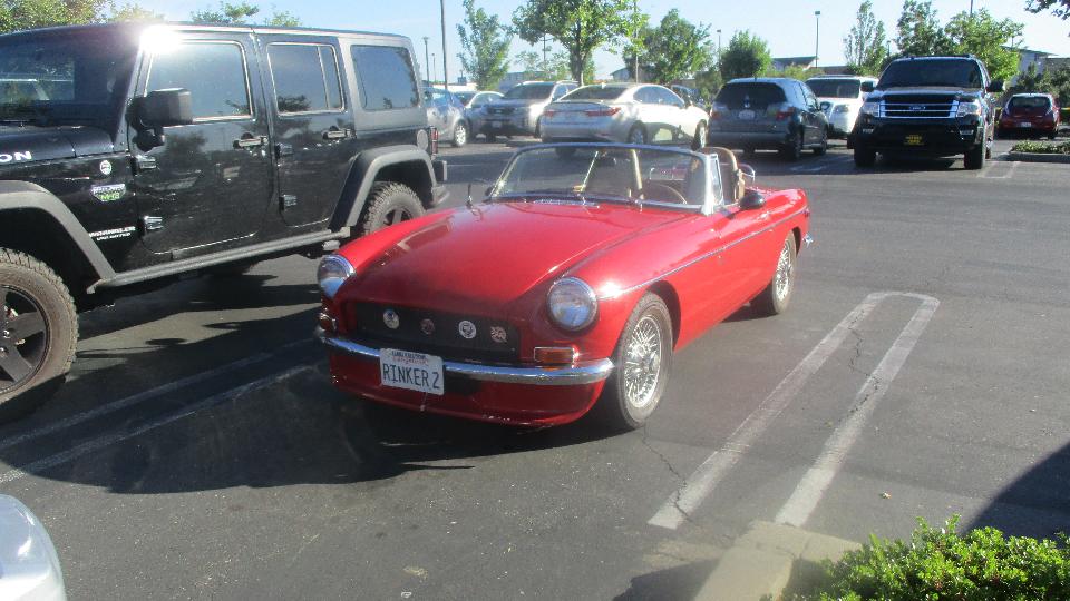 We hopped over the mountains into the central valley for meeting tonight with Central Valley British Car Club in Modesto, CA. About 25 people present, a very jovial bunch and active club. Got a chance to chat for a while with a late arrival, a young fellow who is quite happy with his late model MGB.