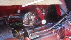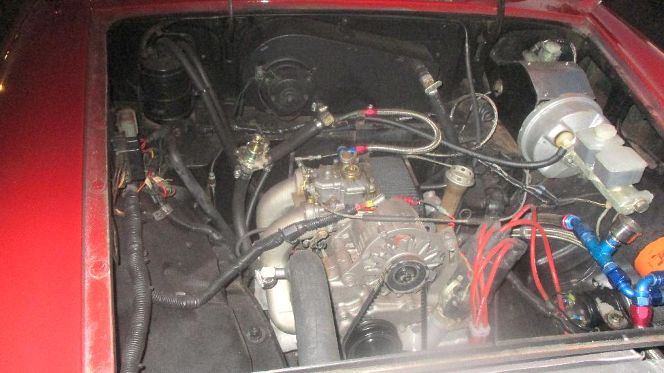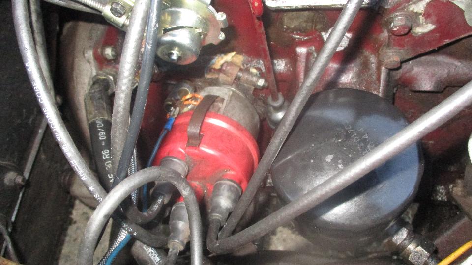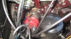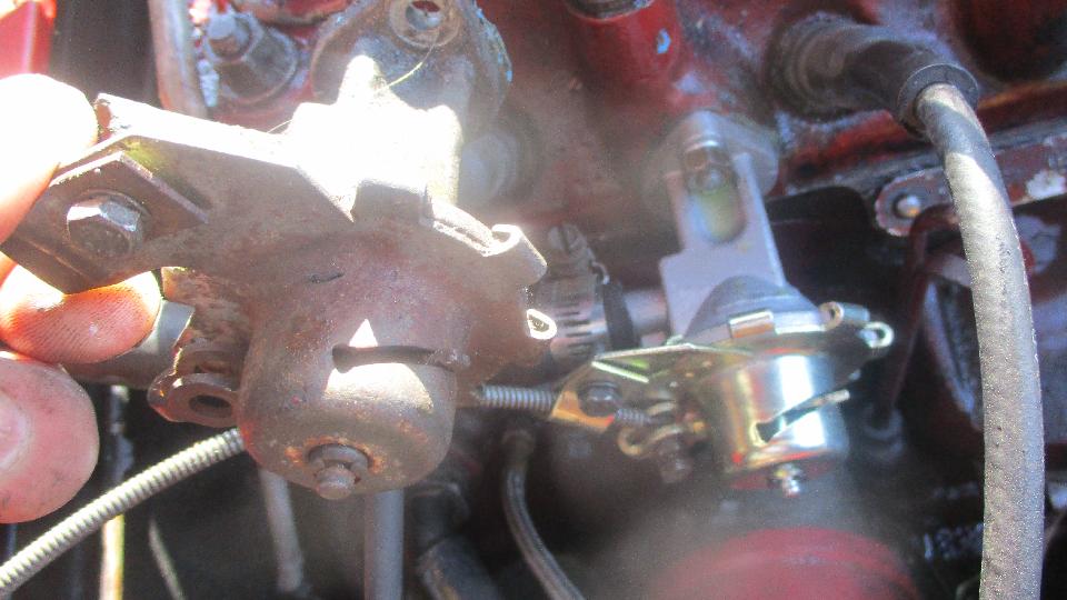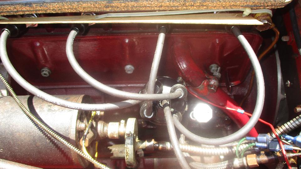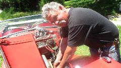 There's Stuart getting the timing reset and the base clamp tight. All back together, and off for another test dive, it runs like a champ. It pulls well up the hills with the 1250 engine, but the engine was running pretty fast at 45-mph in 4th gear. Then Stuart remembered there is a 5th gear, because he installed 5-speed in this car a few years ago, so we were then spinning along nicely at road speed without over-revving (at least on level and down hills). A good feeling when you win; big grins all around.