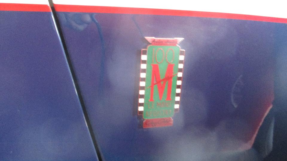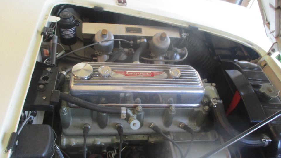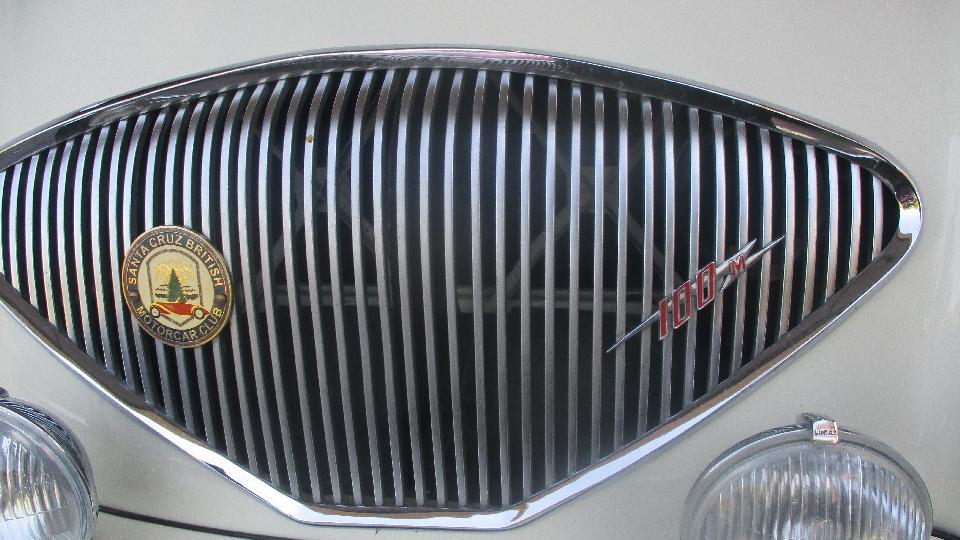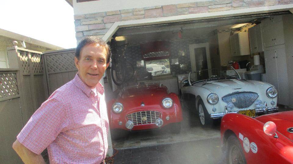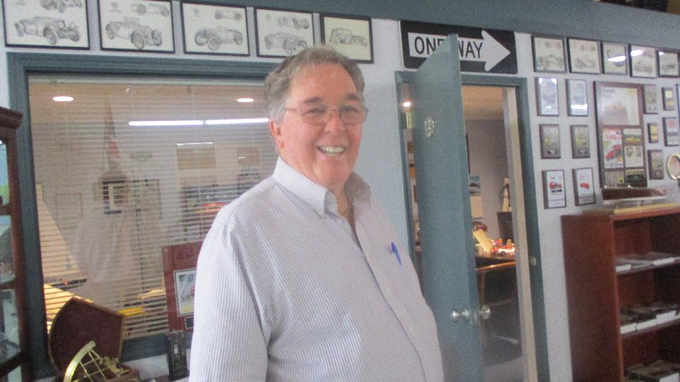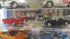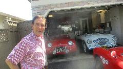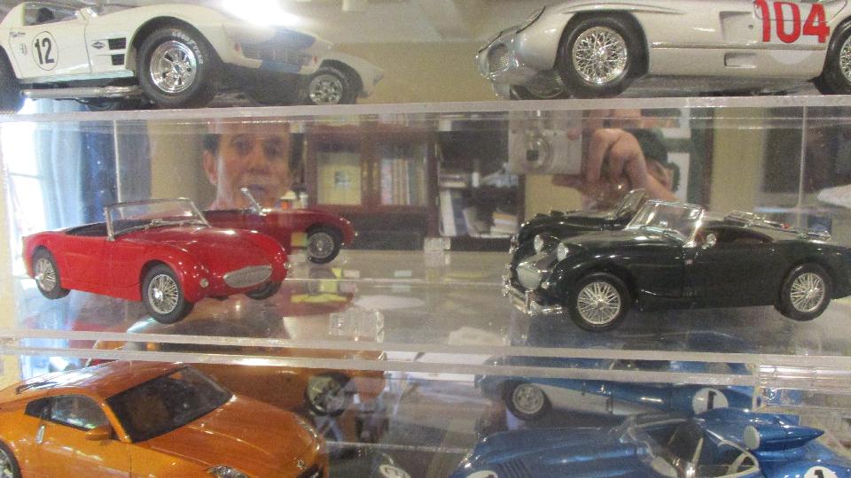 original factory issue Austin Healey 100 M-type. He also has a deep interest in the Austin Healey Sprites. In his model case are two Sprites. The one on the left is a model of Donald Healey's original Sprite prototype with disappearing (pop-up) headlights, and a more aggressive looking forward sloping grill.