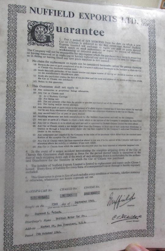 Not finished yet. Still one friend to visit, Bruce Obbink in Pacific Grove, CA. He has restored at least five MG TD's. The one he is keeping is very original, with a supercharger, vintage tax disc, and original "Guarantee" document.