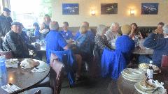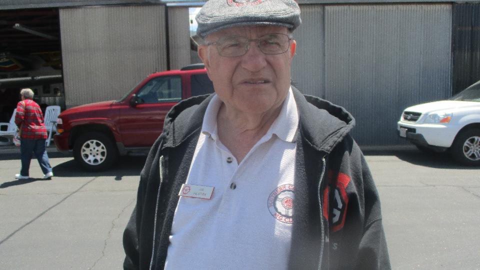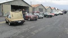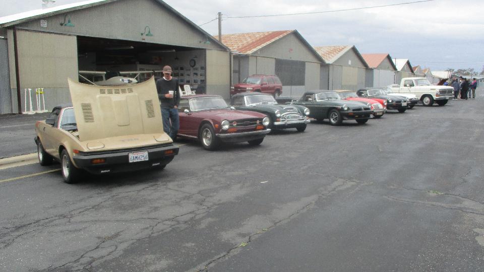 Here we joined Central Coast British Car Club for a two-fer. The cars would be on display as a bit of a car show during open house at the airport to encourage visitation at the air museum. Apparently the other club was there nearly two hours before and had nearly finished breakfast. Good I got the picture when I did, as they were about to head off to the air museum. The loan guy with the name tag is Jim Heaton from Southern California MG Cub.