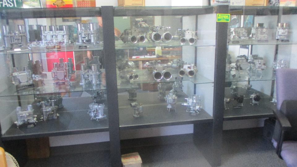 Backtracking another 40 miles we returned to visit Pierce Manifolds in Gilroy, CA. These guys are all about Weber carburetors, like every model ever made, with the sample assortment in the lobby. The vintage tool kit was apparently standard issue when someone got through the training to become an authorized Weber service shop.