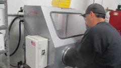 A small section of their inventory, shipping department, and an aqua blaster for gentle cleaning.
